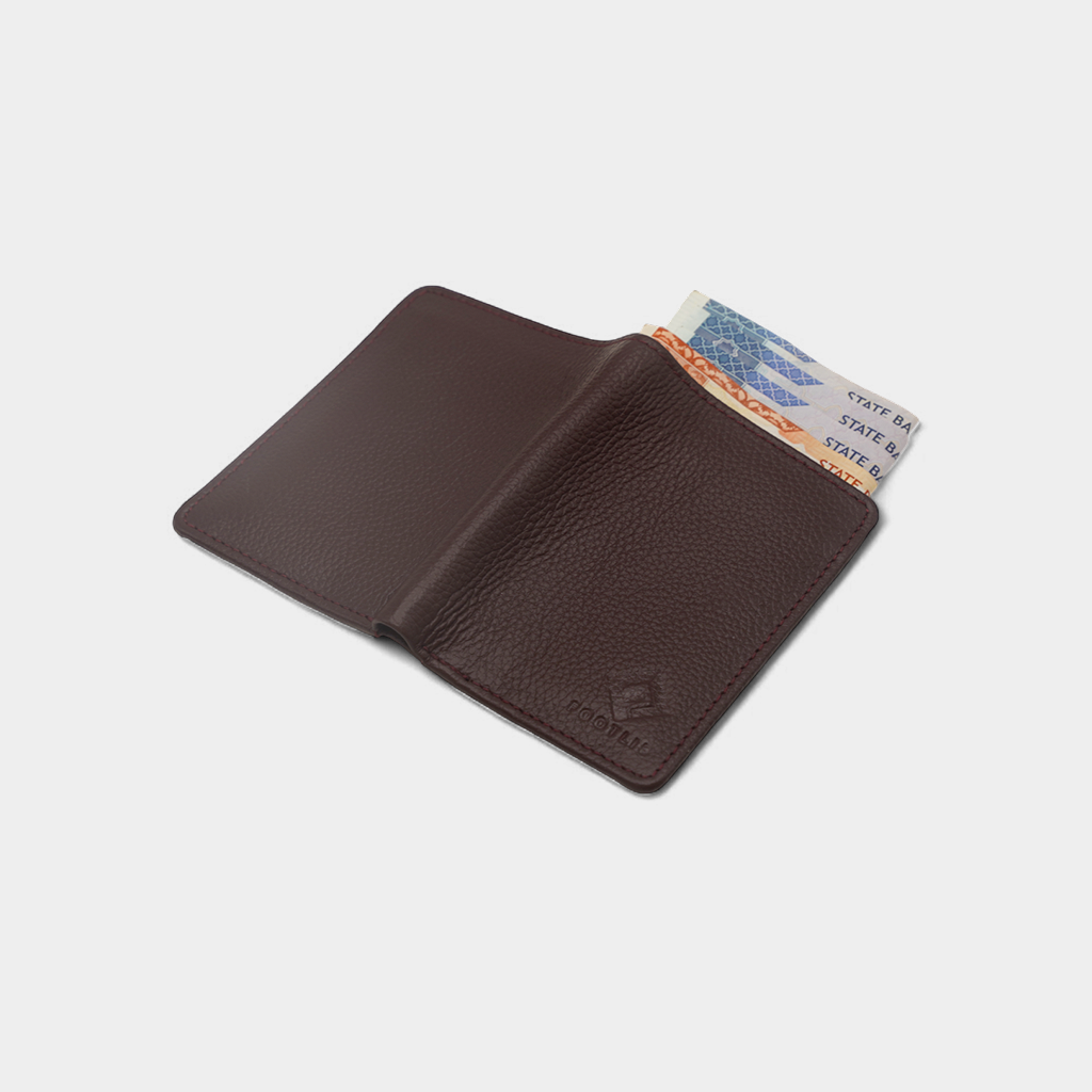 Vertical Genuine Burgundy Leather Card Holder Wallet