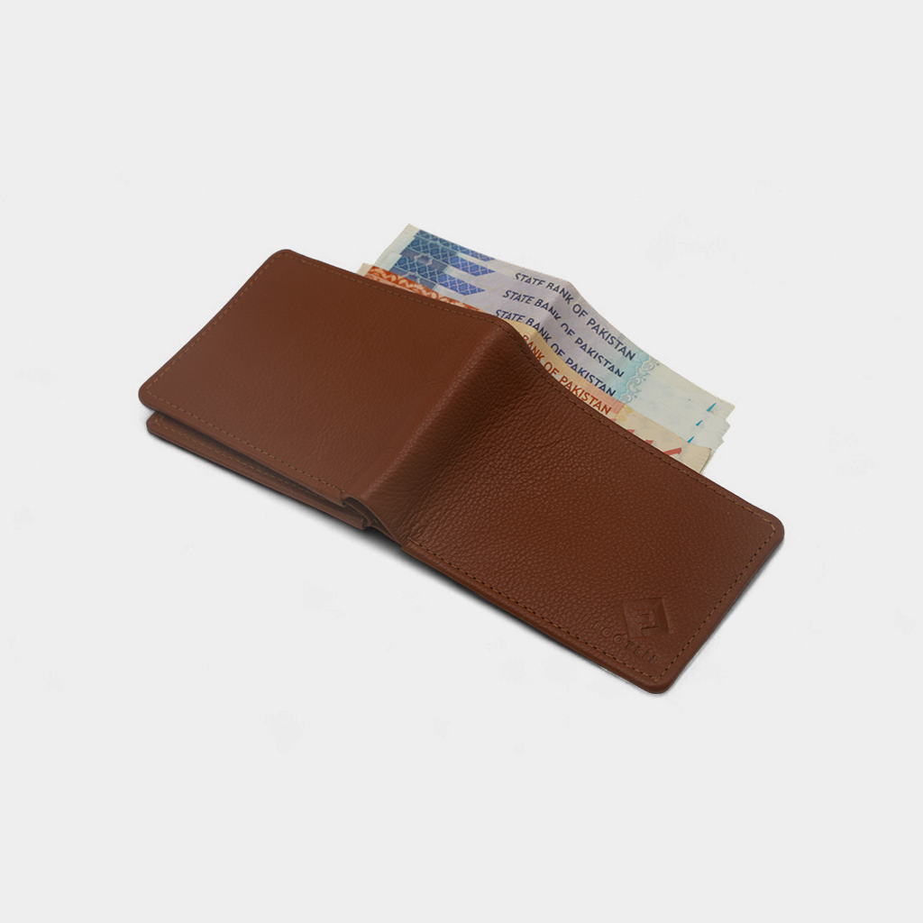 Textured Genuine Tan Leather Tri-Fold Wallet