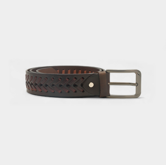 Brown Genuine Leather Belt with Woven Design FTB-PROI