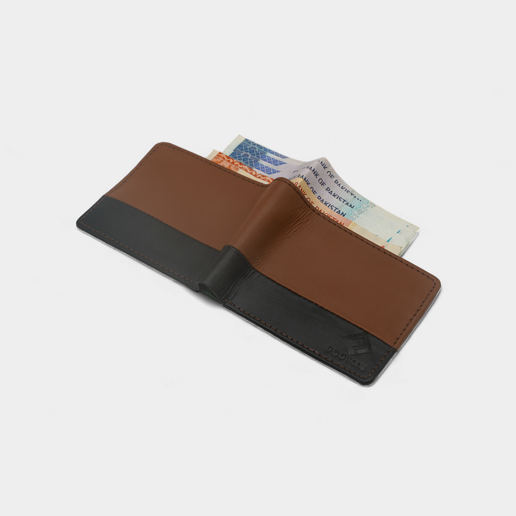 Dual-Tone Genuine Tan Leather Bi-Fold Wallet