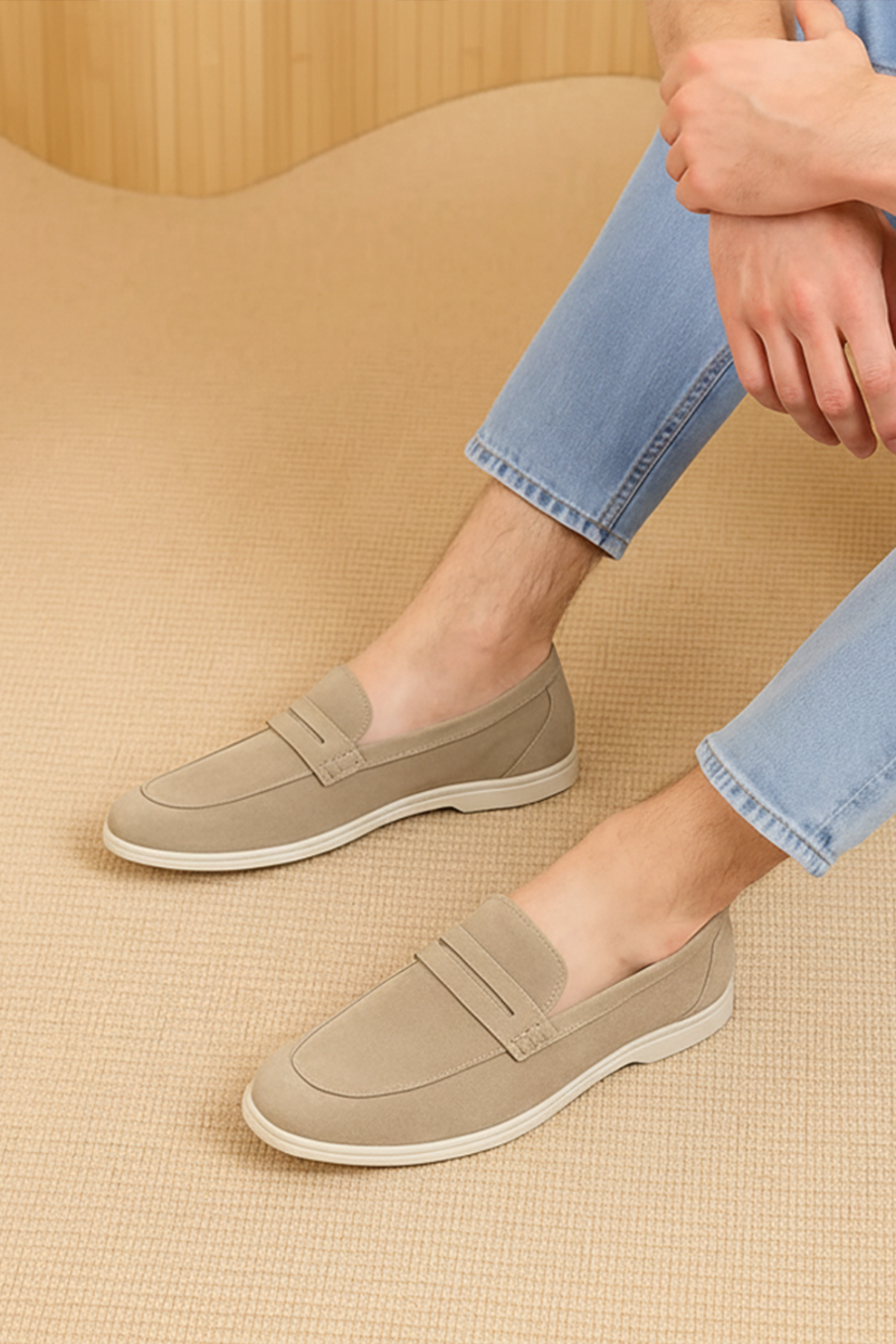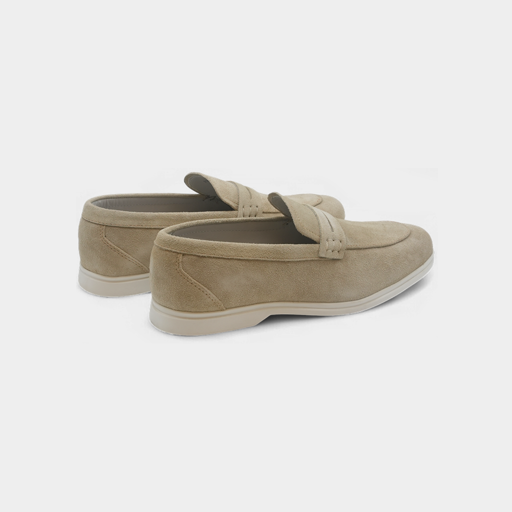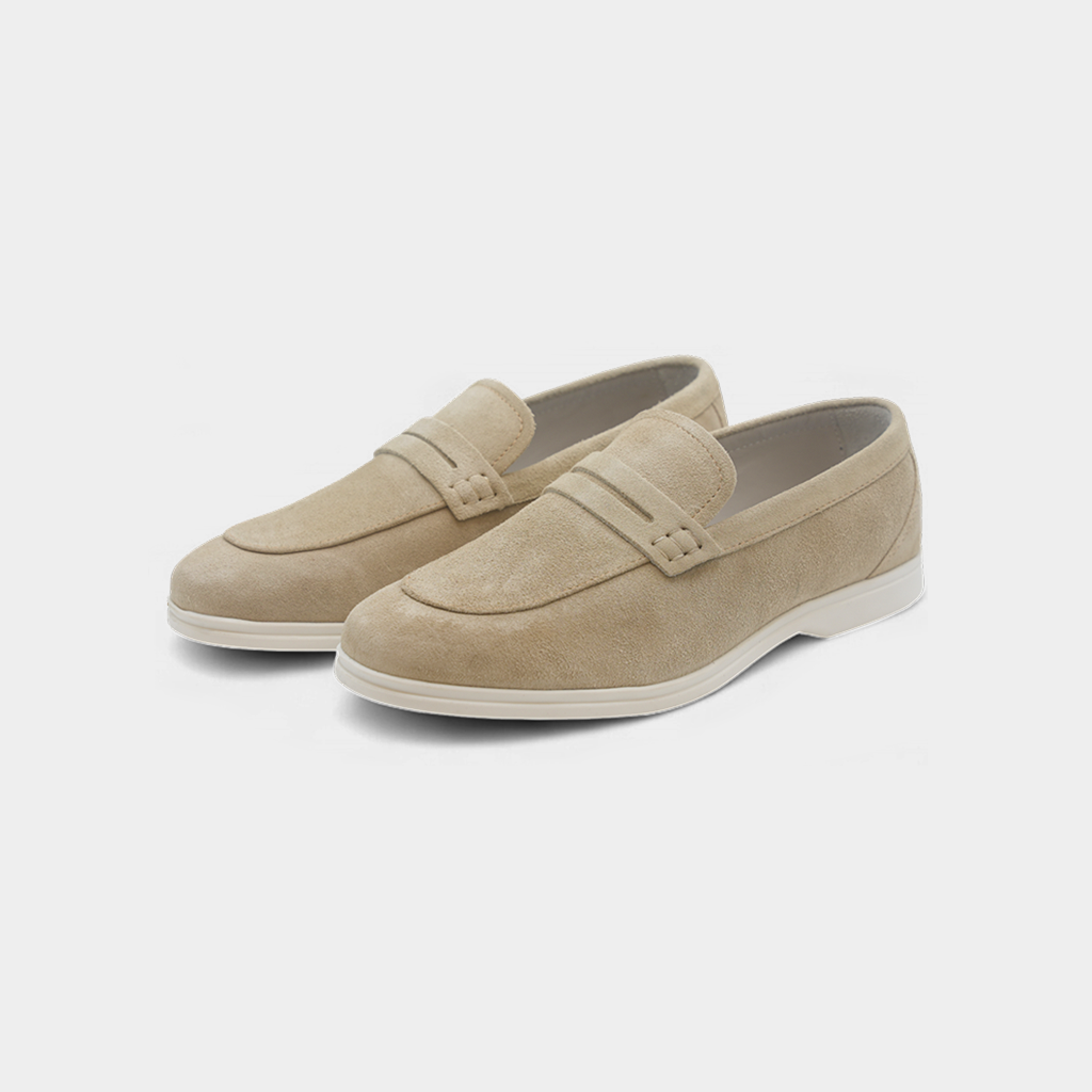 Men's Cream Suede Leather Penny Loafers - FT04-1235