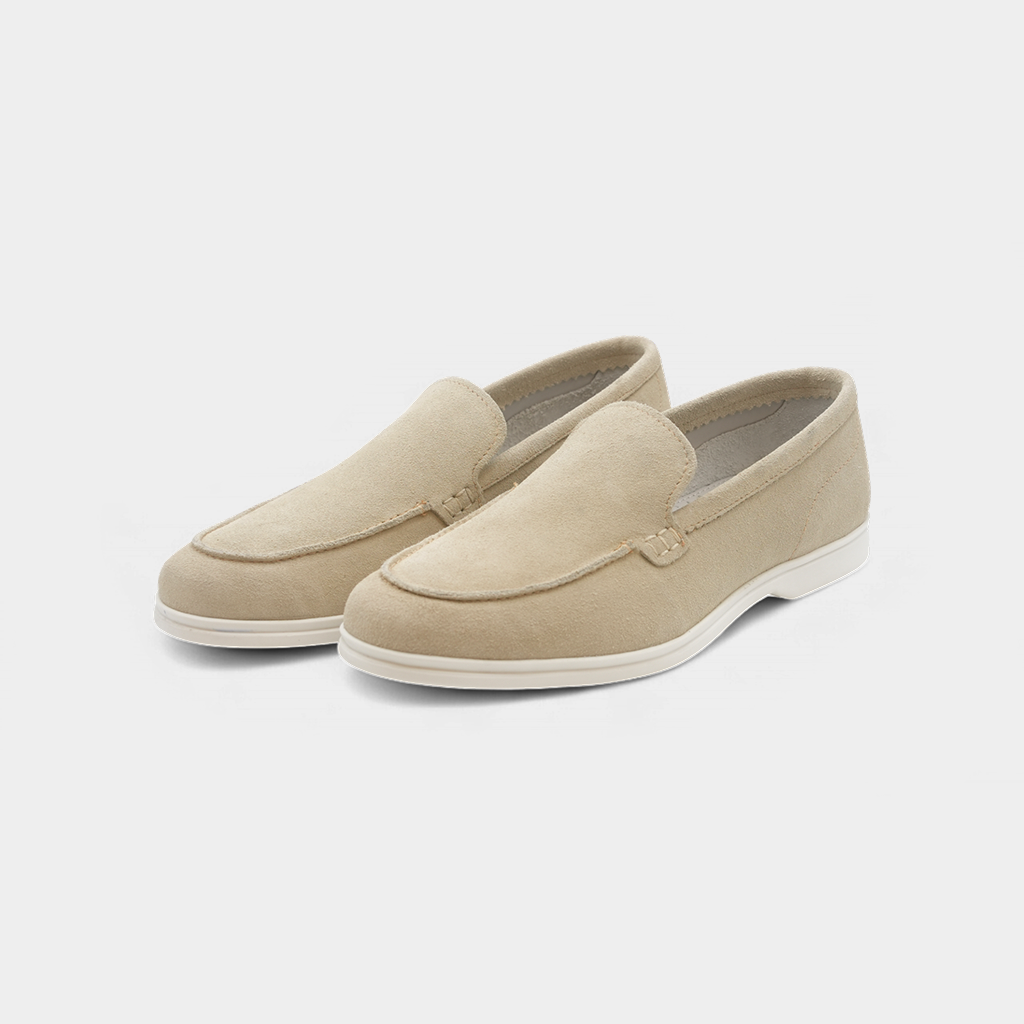 Men's Cream Suede Leather Venetian Loafers - FT04-0831