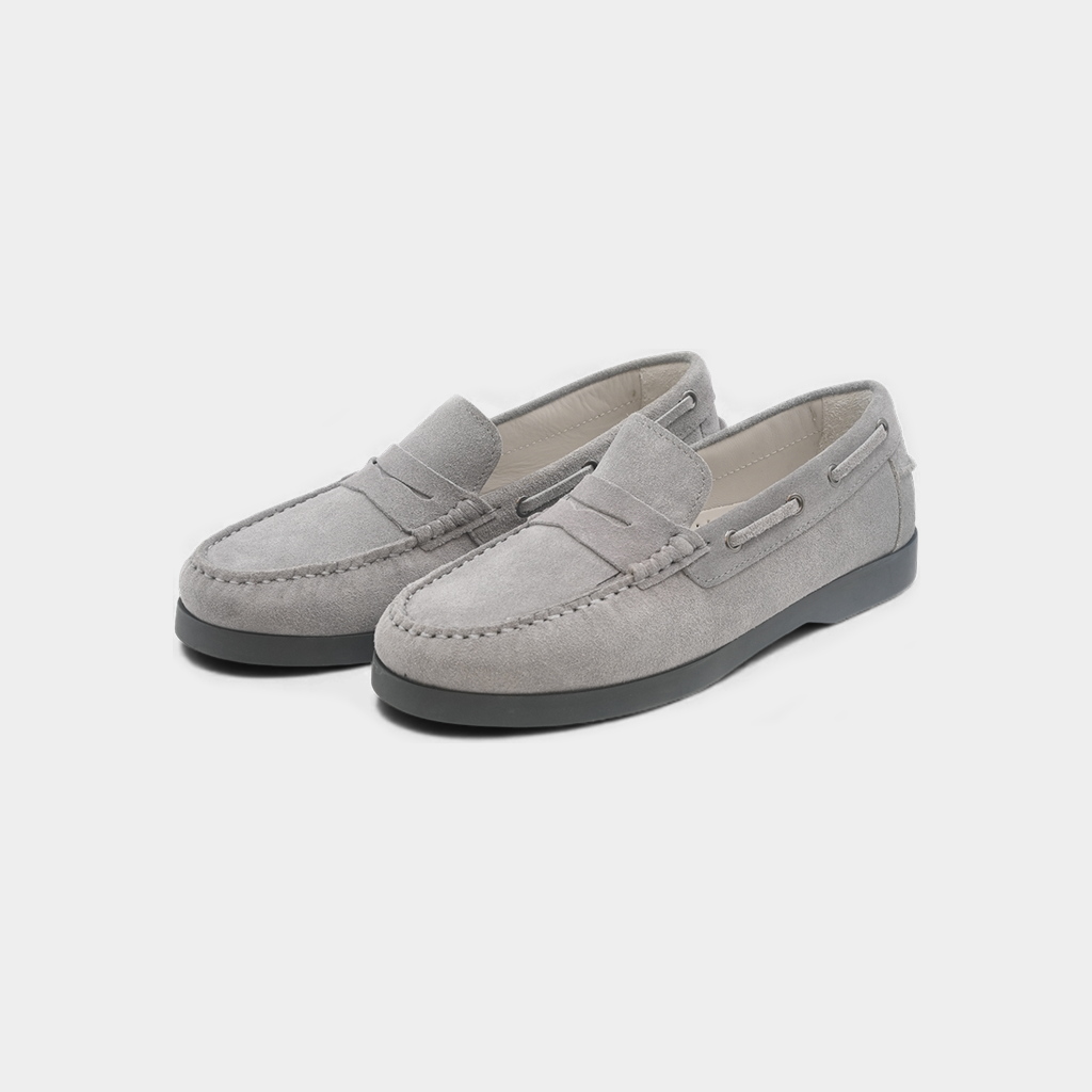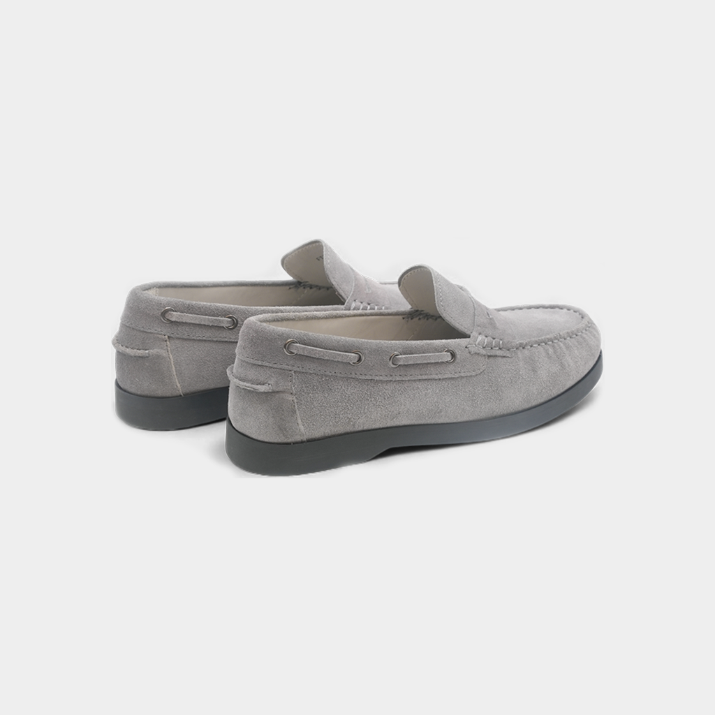 Men's Grey Suede Leather Penny Loafers - FT04-0434